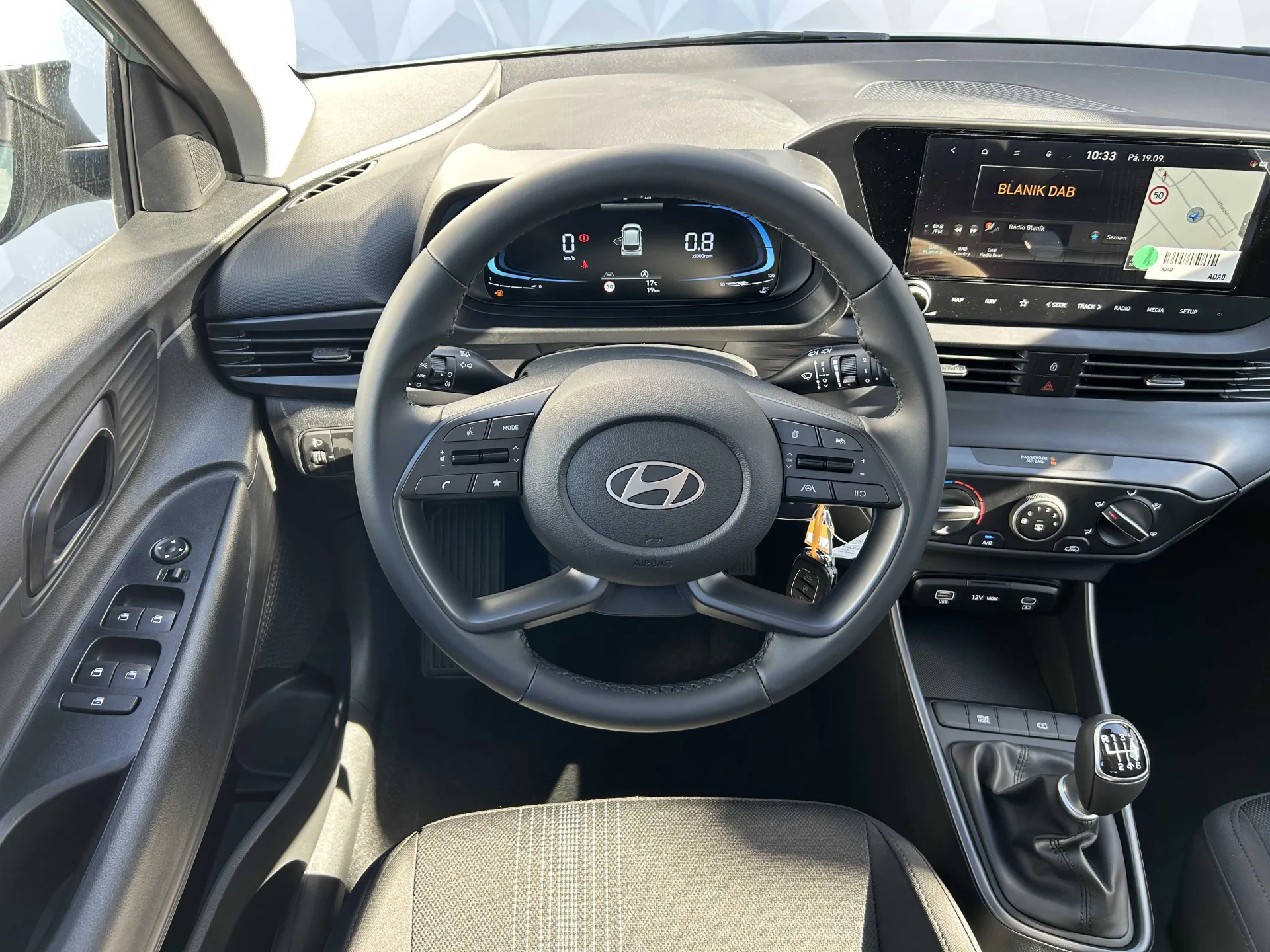 Manuální klimatizace • LED světla pro denní svícení • LED přední světlomety • Elektricky ovládaná, sklopná a vyhřívaná vnější zpětná zrcátka • Elektricky ovládaná přední a zadní okna • Centrální zamykání s dálkovým ovládáním • Tónovaná skla • Vyhřívaná přední sedadla • Vyhřívaný volant • Kůží potažený volant a hlavice řadicí páky • Přední loketní opěrka s úložným prostorem • Výškově nastavitelné sedadlo řidiče • Nastavitelný volant výškově a podélně • Dělená a sklopná zadní sedadla (60:40) • USB‑A konektor vpředu • USB‑C konektory vzadu • Bluetooth handsfree • 6 reproduktorů • Audio systém s 10,25" dotykovým displejem s navigací • Live Services • Bluelink • Apple CarPlay a Android Auto • Palubní počítač • Digitální přístrojový panel 10,25" • Tempomat • Omezovač rychlosti • Asistent pro vedení vozu v jízdním pruhu (LKA) • Asistent pro jízdu uprostřed pruhu (LFA) • Sledování únavy řidiče (DAW) • Automatické nouzové brzdění FCA (detekce vozidel, chodců a cyklistů) • Zadní parkovací senzory • Zadní parkovací kamera • LED zadní světla • Ambientní osvětlení interiéru • Chromované kliky dveří • Dekorace palubní desky • LED interiérové osvětlení • 16" kola z lehké slitiny • Opravná sada na pneumatiky • Airbag řidiče a spolujezdce (spolujezdec vypínatelný) • Boční a hlavové airbagy • Dětská pojistka vzadu • Isofix a Top Tether • eCall systém • ABS, ESC, HAC, MCB, EBD, BA